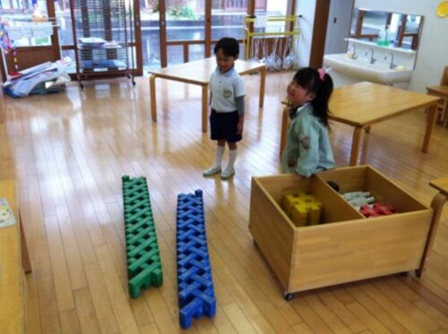 雨もやんで少しあたたかい?朝です。 『えんちょうせんせー、ちょっときてー。』最近、呼ばれると写メ撮ってくださいが多いです(笑) 『大物ができたー。』真ん中の男の子がつくたっと思ったら… 彼の作品だそうですー(笑) あさ、廊下に落ちていた手紙をほ…